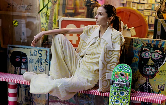 “Baroque explores emotion, power, and the forces ofnature through dramatic light and shadow, exaggerated forms, and dynamic compositions. Inspired byreligious devotion, scientific enlightenment, and courtly opulence, it blends order and chaos, stillness, and motion, creating acaptivatingexpression ofaristicgrandeur and emotional intensity.Yarns blending viscose, polyester, and cotton-linen combine silky smoothness,moisture absorption, durability, elasticity, and natural textures, offering greater creative possibilities for knitwear design. Their rich textures and versatile proper-ties provide garments with uniquetactile and visual effects, making them suitable for everything from lightweight, flowing summer knits to warm and durable early autumnpieces, balancing practicality with environmental value.