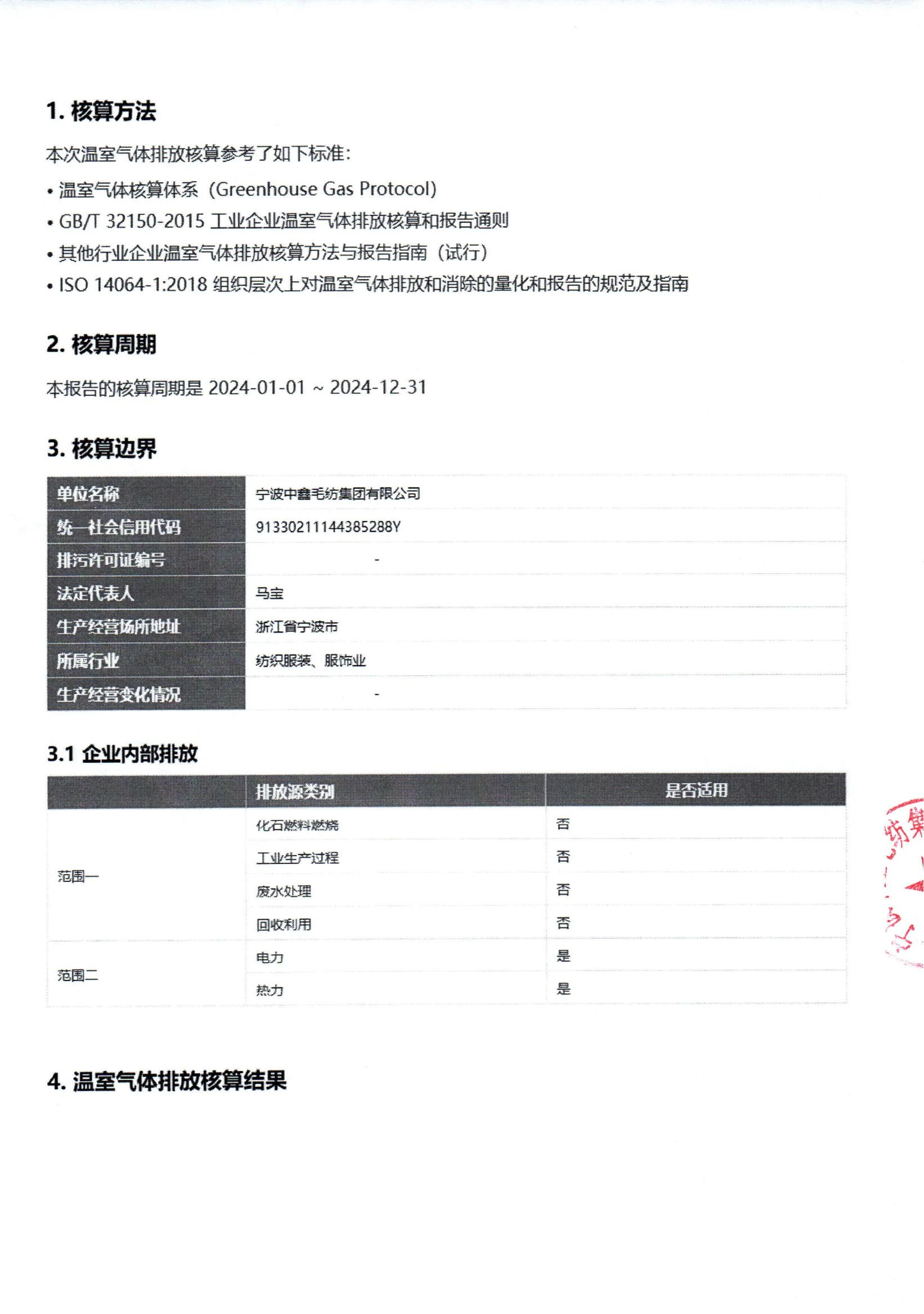宁波中鑫毛纺集团温室气体排放报告